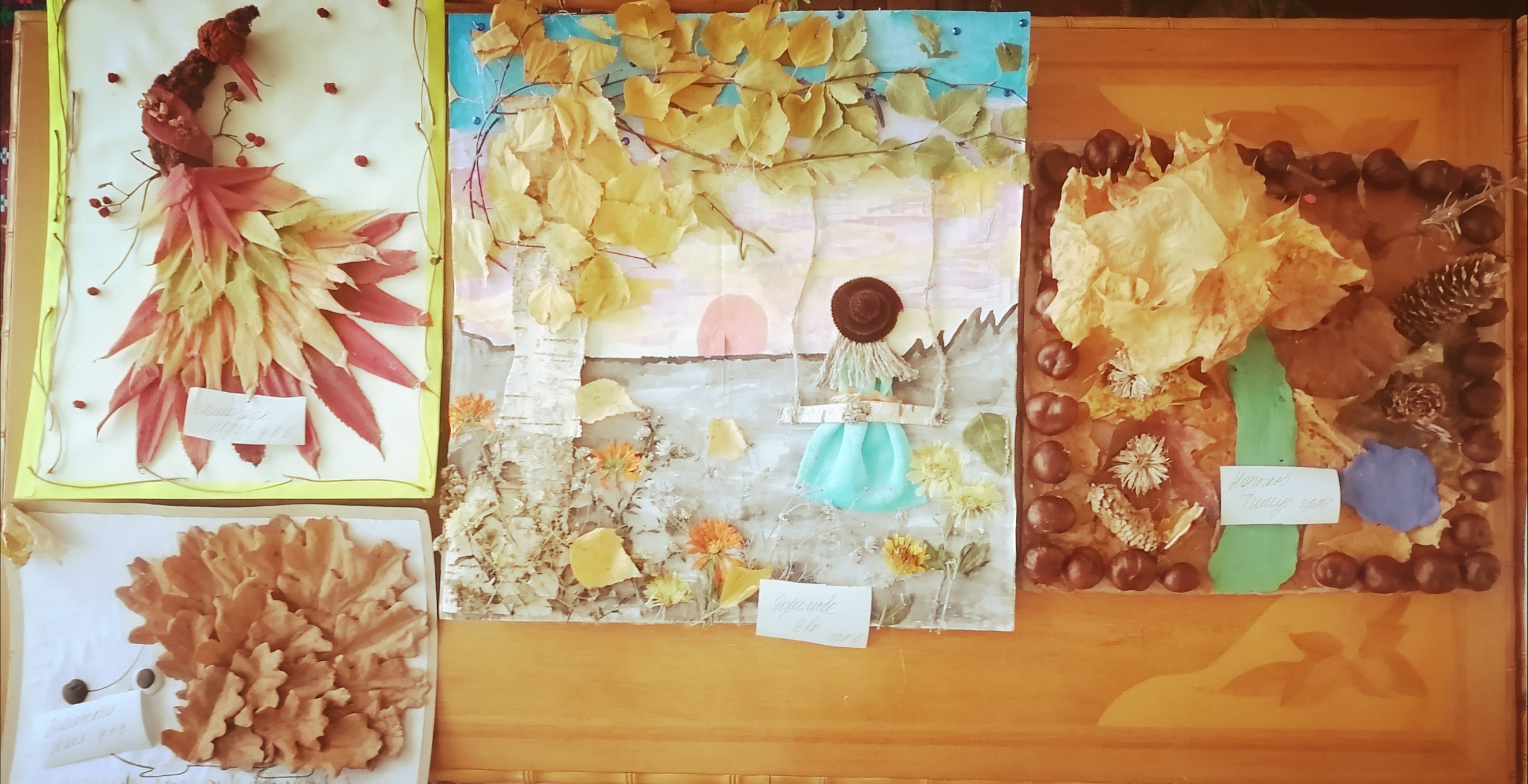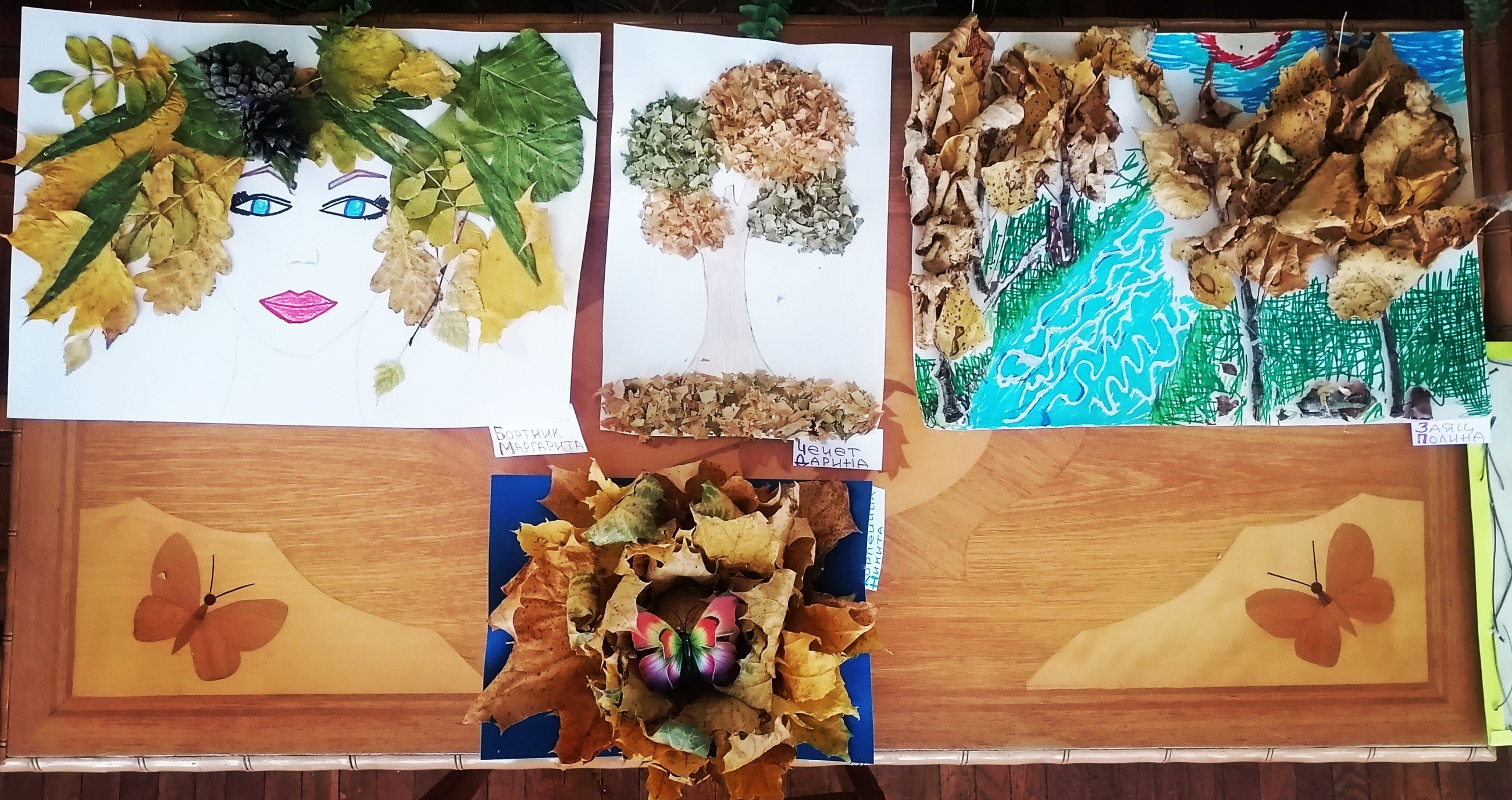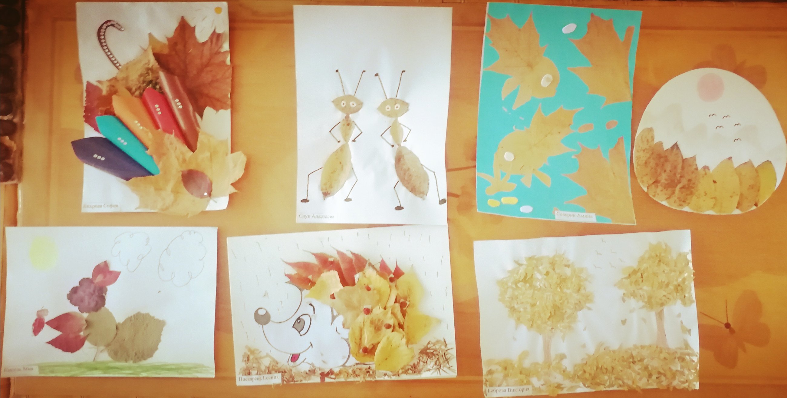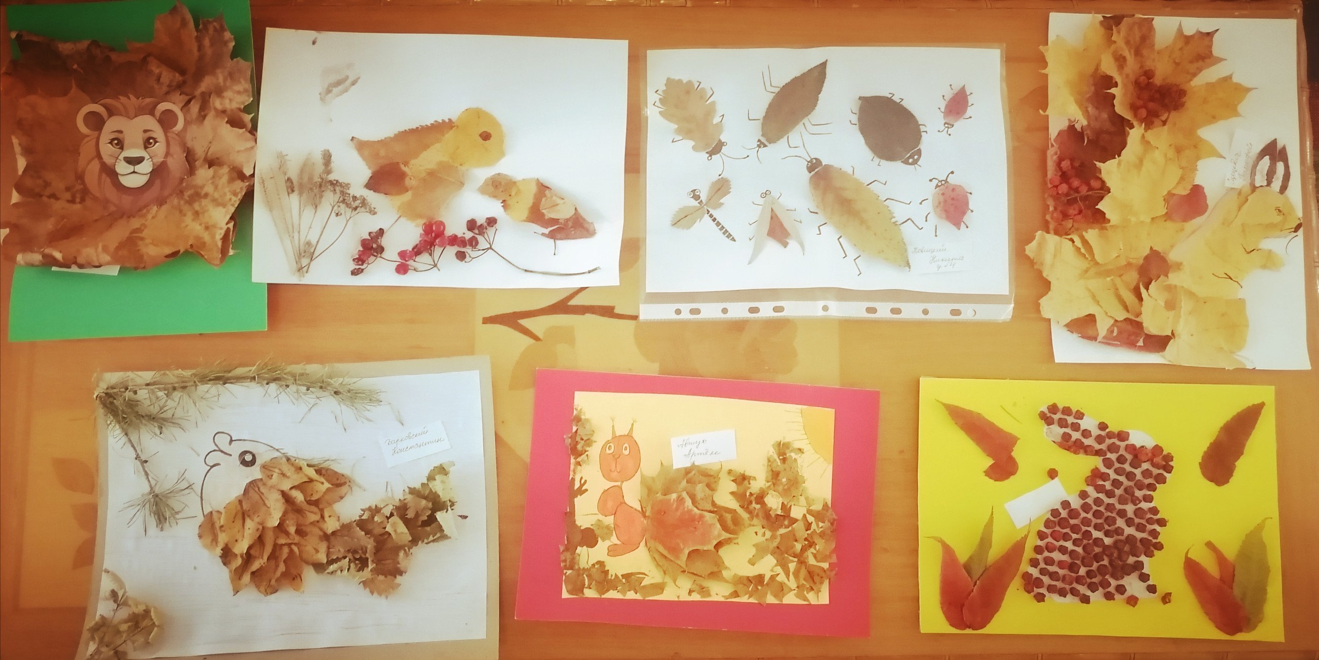 развлечение, благодаря такой деятельности дети смогли получить увлекательные уроки по ознакомлению с окружающим миром, развивали мышление и творческие способности. Занятия аппликацией из засушенных листьев способствовало развитию моторики, усидчивости.