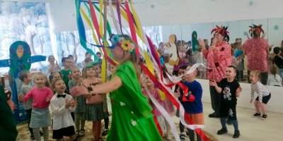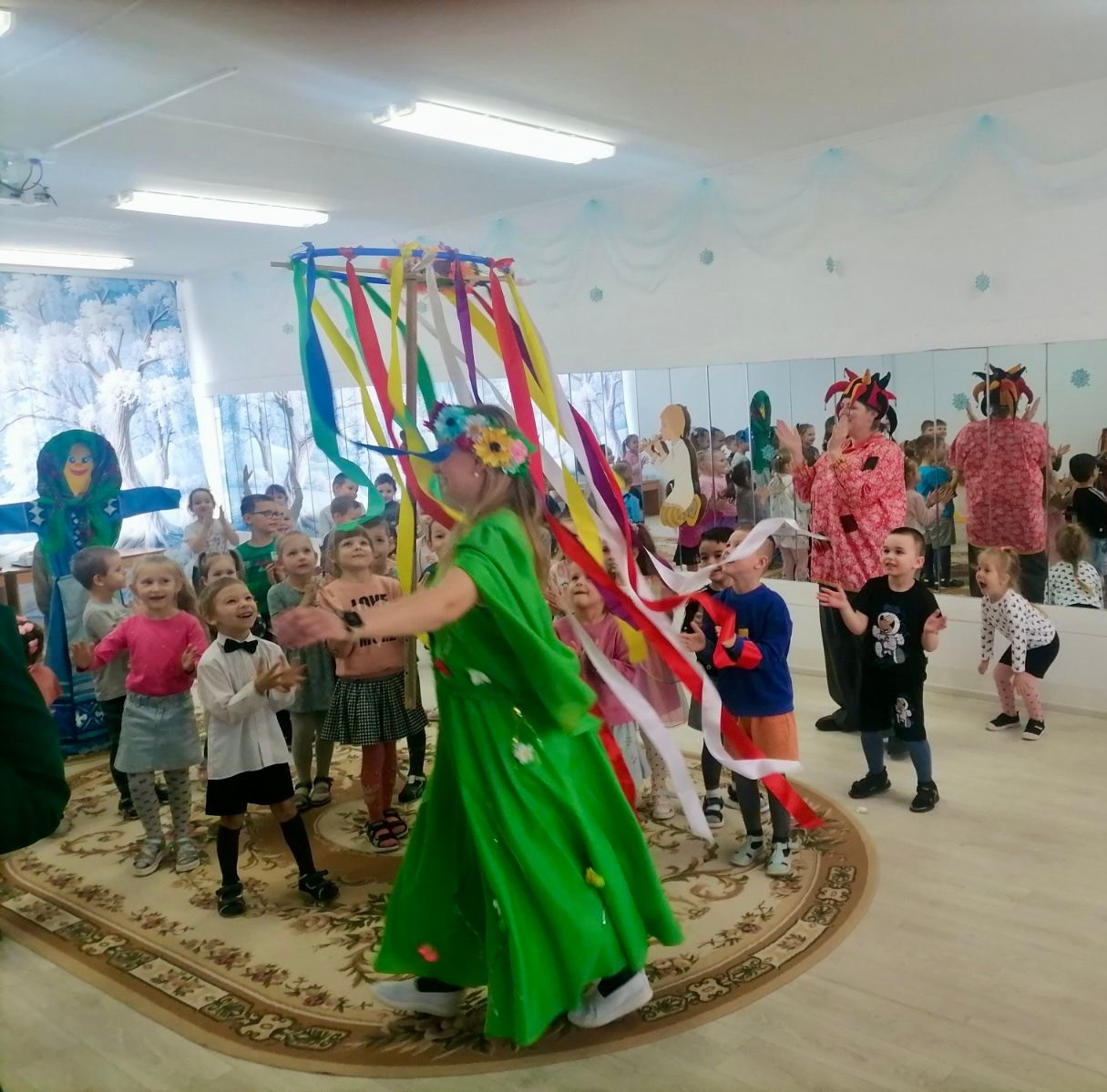 Кульминацией праздника стало веселое гулянье, которое прошло 17 февраля. Нарядно одетые дети собрались в музыкальном зале, где их встречали сказочные персонажи: веселые Скоморохи, красавица Весна и, конечно же, сама государыня Масленица.
